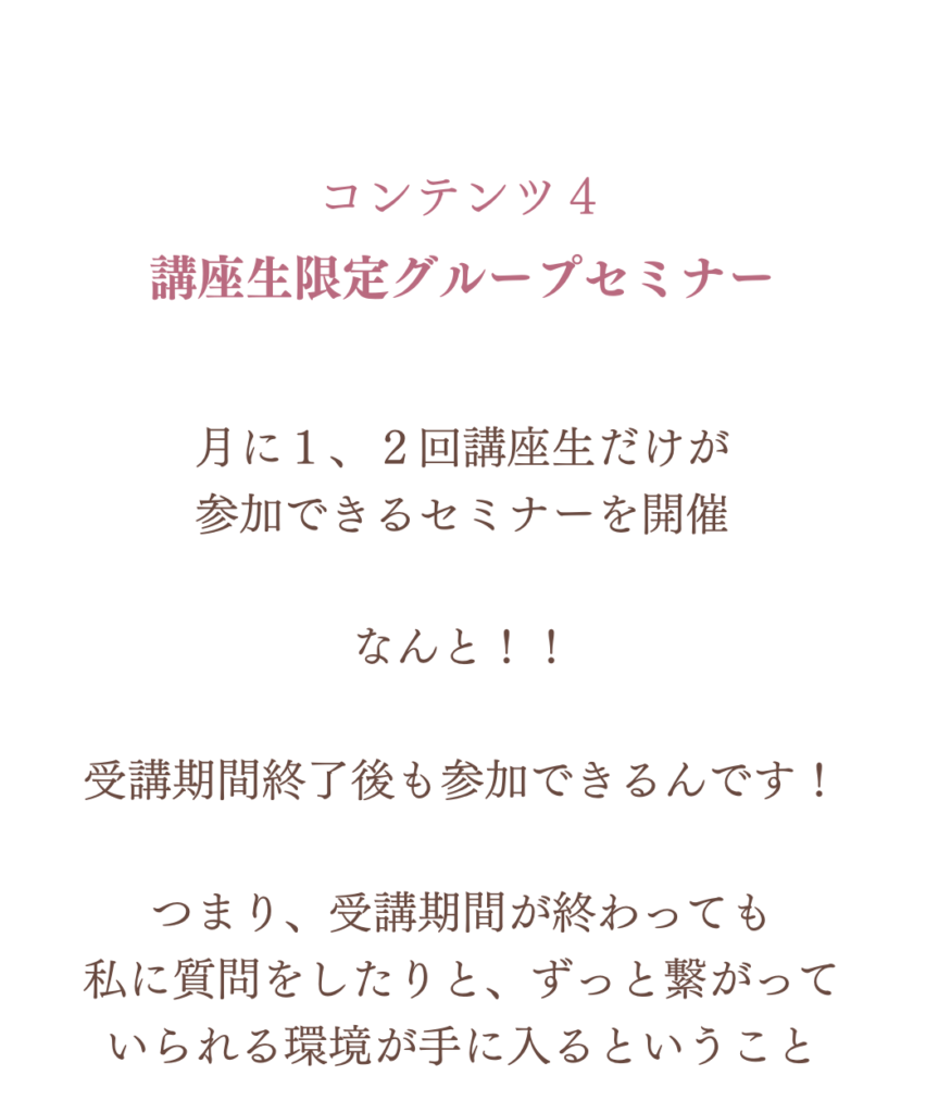 ※6ヶ月過ぎた後も講座生グループセミナーで勉強会&質問会がございますので、ご安心ください。